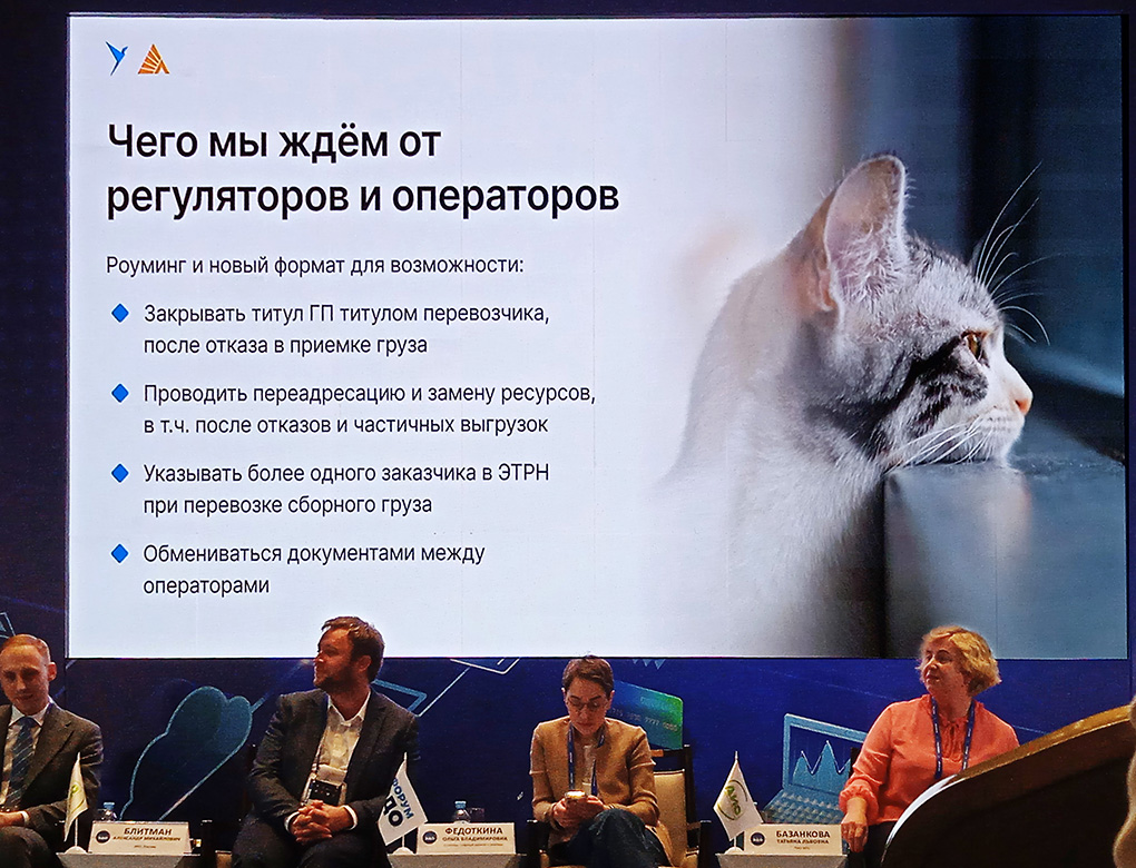 Одним из наиболее сложных для реализации направлений в ЭДО эксперты признали электронную перевозочную документацию. Это связано, прежде всего, со сложной схемой обмена и вовлеченностью в оформление нескольких участников. Кроме того, реальные перевозочные процессы не всегда строго соответствуют сценариям, прописанным в нормативной базе, — в частности, это касается работы экспедиторских организаций без собственного подвижного состава, – об этом говорил в своей презентации на сессии, посвященной ЭПД, представитель компании «Тензор» Роман Спиридонов. Острые проблемы внедрения были проиллюстрированы картинками с котиками, чтобы снизить накал страстей.